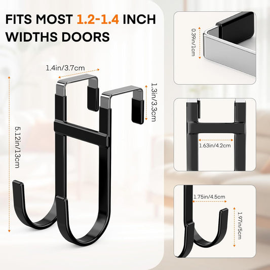 FYY Over The Door Hooks - 2 Pack Heavy Duty Dual-Hook Organizer Hanger with Non-Slip Rubber for Towels, Clothes, Hats & Bags Use in Bathroom, Bedroom, Kitchen - Fits Interior Doors Up to 1 3/8" Black