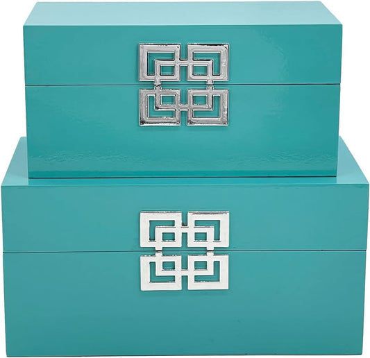 Galt International Large & Small Decorative Storage Box w/Hinged Lid - Classic Design Wood Decor Boxes with Geometric Opening Clasp - Storage for Bedroom and Home - Set of 2 (Blue)