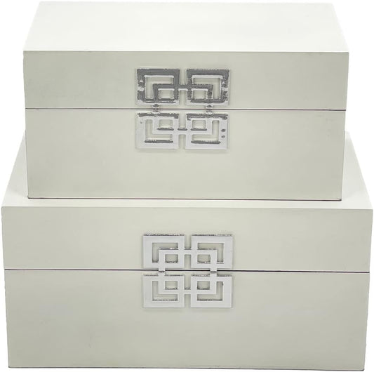 Galt International Storage Box Set Decorative Storage Box w/Hinged Lid Classic Design Wood Decor Boxes with Geometric Clasp Storage for Bedroom & Home - Set of 2 (White & Silver)