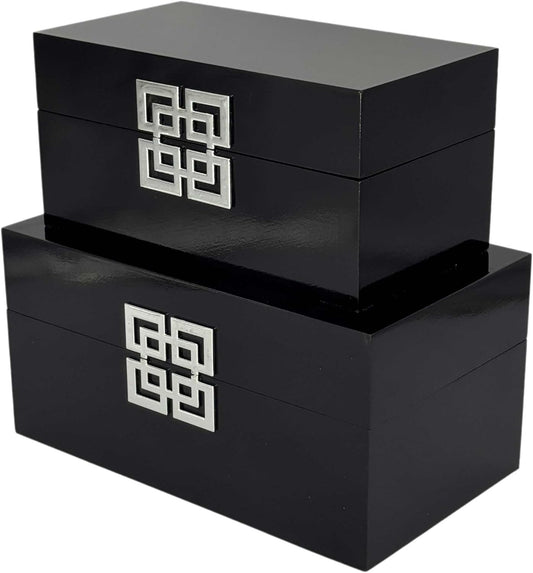Galt International Storage Box Set Decorative Storage Box w/Hinged Lid Classic Design Wood Decor Boxes with Geometric Clasp Storage for Bedroom & Home - Set of 2 (Black & Silver)