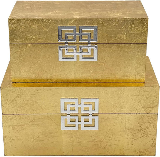 Galt International Storage Box Set Decorative Storage Box w/Hinged Lid Classic Design Wood Decor Boxes with Geometric Clasp Storage for Bedroom & Home - Set of 2 (Gold Leaf)