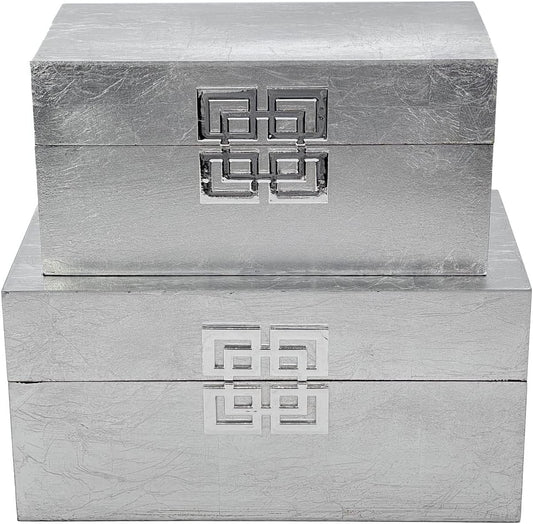 Galt International Storage Box Set Decorative Storage Box w/Hinged Lid Classic Design Wood Decor Boxes with Geometric Clasp Storage for Bedroom & Home - Set of 2 (Silver)