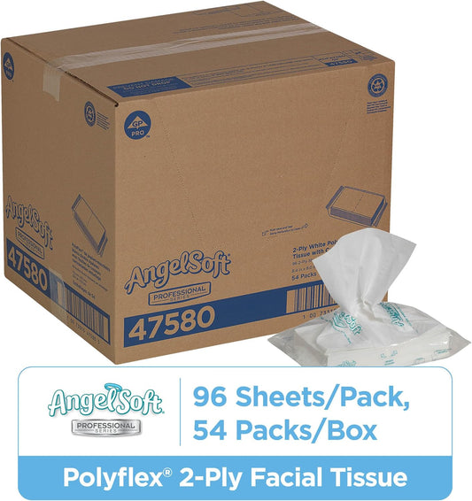 Georgia-Pacific Angel Soft Professional Series Polyflex 2-Ply Facial Tissue Paper (47580),96 Sheets Per Pack, 54 Bulk Tissue Packs Per Case, Fits Any Dispenser