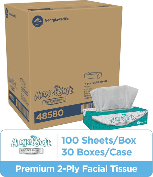 Georgia-Pacific Angel Soft Professional Series 2-Ply Facial Tissue (48580), 100 Sheets Per Box, 30 Tissue Flat Boxes Per Bulk Case