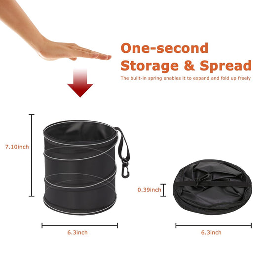 Ginsco New Leakproof Car Trash Can, 1 Gallon Mini Trash Can Pop-up Collapsible Hanging Car Trash Bin with Hook and Loop, Waterproof PEVA Liner Open-Top Garbage Can for Cars Home Office