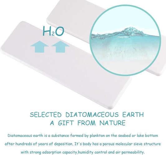 2 Pcs Water Absorbing Stone Trays, Kitchen/Bathroom Sink Soap Dish, Diatomite Tray Used for Hand Soap & Cosmetic Bottles in The Modern Home, 3.15" W x 11.8" L, White