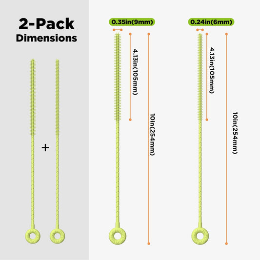 2 Pcs Silicone Straw Cleaner Brush, Extra Long Cleaning Brushes for Straws, 6mm&9mm, Green