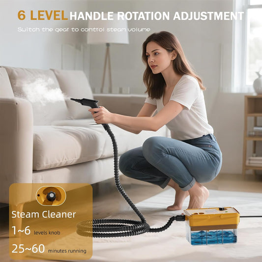 Handheld Pressurized Steam Cleaner, 6-Level Adjustable Handle 20s Heat-Up Big Tank, Portable Steamer for Cleaning Stubborn Dirt Grease Tile Grout Floor Car (Black/Yellow)