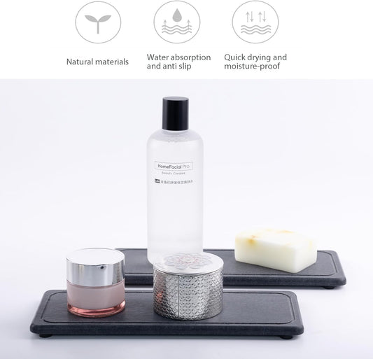 2 Pcs Water Absorbing Stone Trays, Kitchen/Bathroom Sink Soap Dish, Diatomite Tray Used for Hand Soap & Cosmetic Bottles in The Modern Home, 4" W x 10.2" L, Dark Gray