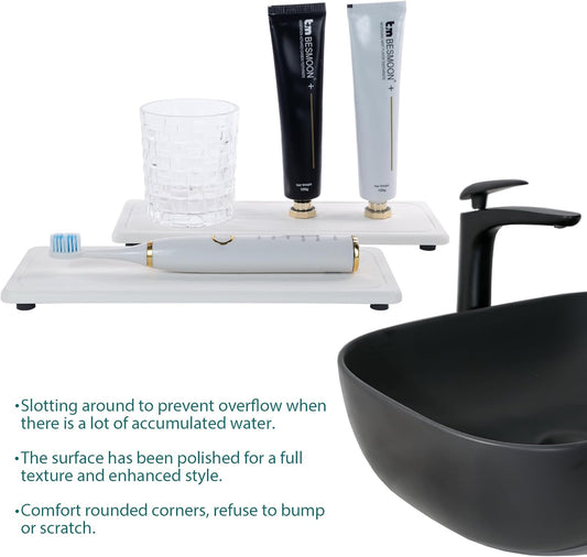 2 Pcs Water Absorbing Stone Trays, Kitchen/Bathroom Sink Soap Dish, Diatomite Tray Used for Hand Soap & Cosmetic Bottles in The Modern Home, 4" W x 10.2" L, White