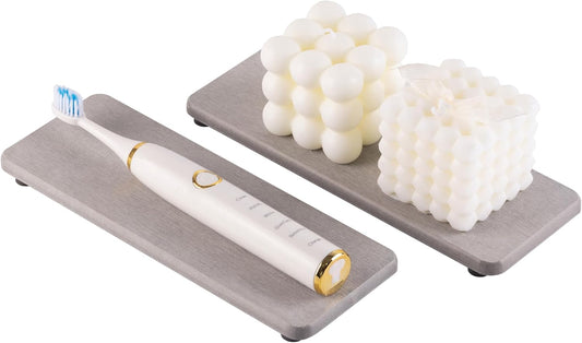 2 Pcs Water Absorbing Stone Trays, Kitchen/Bathroom Sink Soap Dish, Diatomite Tray Used for Hand Soap & Cosmetic Bottles in The Modern Home, 4" W x 8.3" L, Gray
