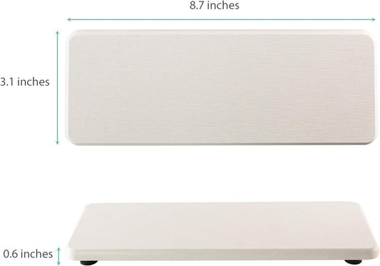 2 Pcs Water Absorbing Stone Trays, Kitchen/Bathroom Sink Soap Dish, Diatomite Tray Used for Hand Soap & Cosmetic Bottles in The Modern Home, 3.54" W x 9" L, White