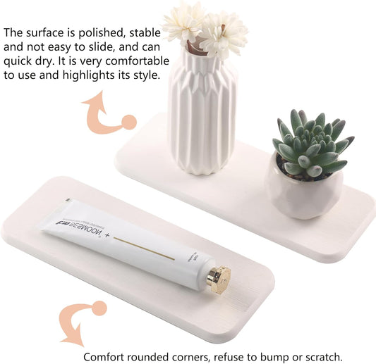 2 Pcs Water Absorbing Stone Trays, Kitchen/Bathroom Sink Soap Dish, Diatomite Tray Used for Hand Soap & Cosmetic Bottles in The Modern Home, 3.5" W x 7.1" L, White