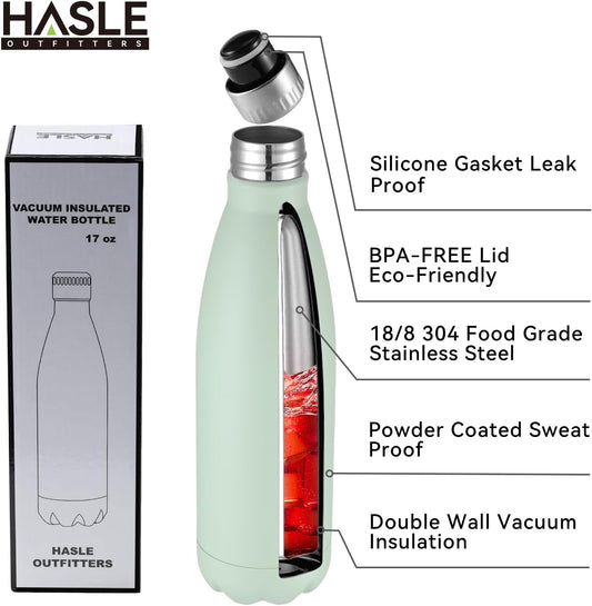 HASLE OUTFITTERS 17oz Stainless Steel Water Bottles, Vacuum Insulated Water Bottles Double Walled Reusable Metal Sports Water Bottles Keep Drinks Hot and Cold, Light Green, 1Pack