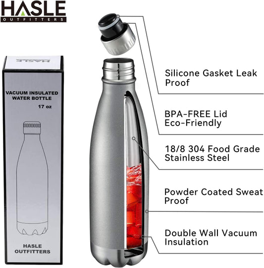 HASLE OUTFITTERS 17oz Stainless Steel Water Bottles, Vacuum Insulated Water Bottles Double Walled Reusable Metal Sports Water Bottles Keep Drinks Hot and Cold, Stainless, 1Pack