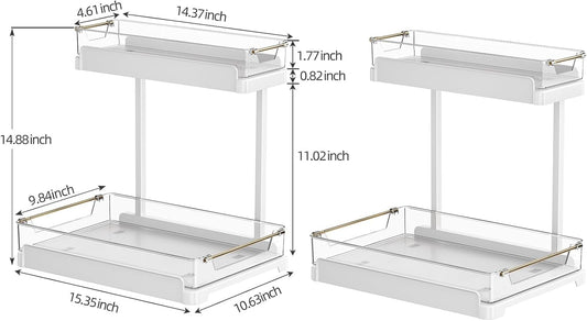 heart & home 2-Pack Under Sink Storage Organizer for Kitchen & Bathroom Cabinets with Removable Washable Tray, Tool-Free Assembly – Multi-Purpose for Countertop, Laundry & Vanity, White