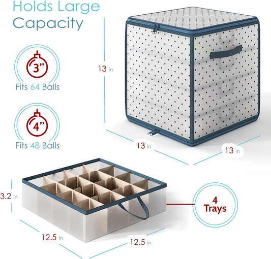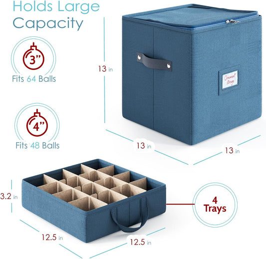 Hearth & Harbor Christmas Ornament Storage Box With 4 Inner Tray Dividers - Non-Woven Ornament Storage Container For 64 Holiday Ornaments or Decorations