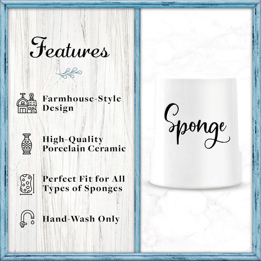 Home Acre Designs Sponge Holder for Kitchen Sink - Rustic Farmhouse Home & Kitchen Decor - White Ceramic