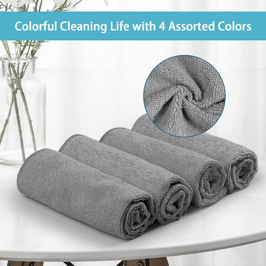 HOMEXCEL Microfiber Cleaning Cloth, 50 Pack Cleaning Rags, Cleaning Towels with 4 Color Assorted, 11.5"X11.5"(Green/Blue/Yellow/Pink)