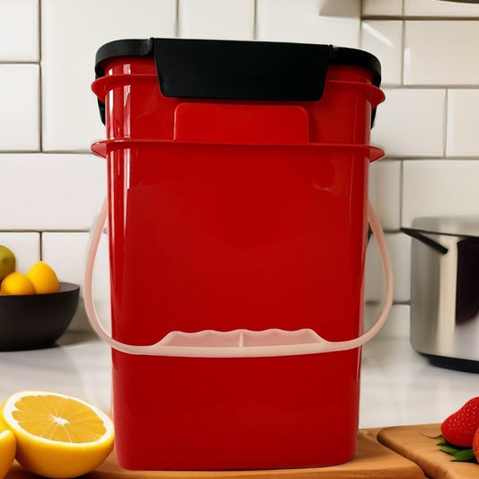 House Naturals 4 Gallon Square Food Grade Bucket Pail with Plastic Handles and Lid (Pack of 3) Made in USA containers (Red - Black lids)