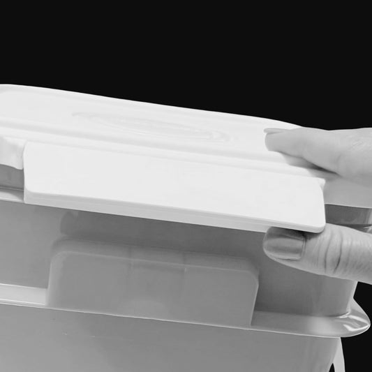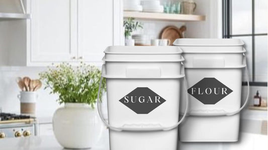 House Naturals 4 Gallon Square Food Grade Bucket Pail with Plastic Handles and Lid (Pack of 3) Made in USA containers (White - Black lids)