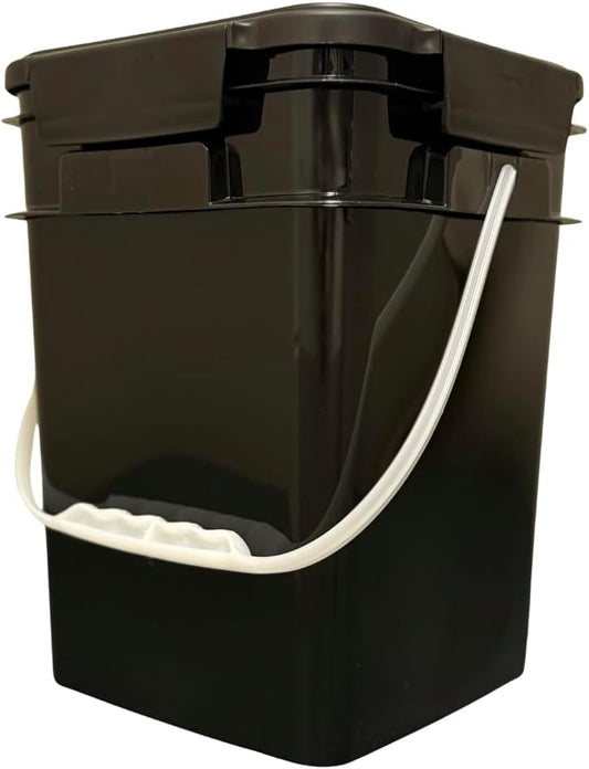 House Naturals 4 Gallon Square Food Grade Bucket Pail with Plastic Handles and Lid (Pack of 3) Made in USA containers (Black)