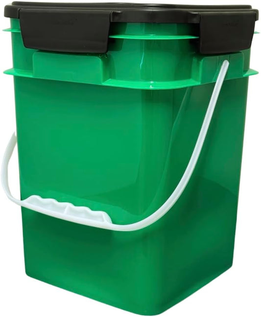 House Naturals 4 Gallon Square Food Grade Bucket Pail with Plastic Handles and Lid (Pack of 3) Made in USA containers (Green)