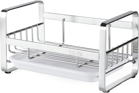 HULISEN Kitchen Sink Sponge Holder, 304 Stainless Steel Kitchen Soap Dispenser Caddy Organizer, Countertop Soap Dish Rack Drainer with Removable Drain Tray, not Including Dispenser and Brush