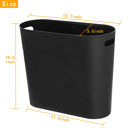 HZSOOCH 3 Pack Slim Waste Basket 3.2 Gallon 12L Plastic Small Trash Can, Office Trash Can, Slim Garbage Container Bin, Small Wastebasket with Handles for Narrow Spaces Bathroom, Kitchen (Black)