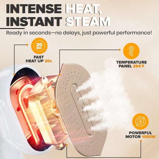 Humse Portable Steamer for Clothes – 2 in 1 Travel Steamer Iron For Clothes, Light Weight with 230ml Water Tank- 20s Heat-up 1050W garment steamer, Fabric Wrinkle Remover with 180° Handle (White)