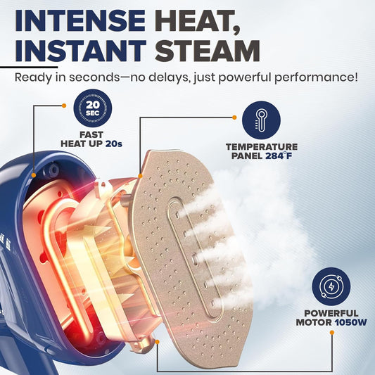 Humse Portable Steamer for Clothes – 2 in 1 Travel Steamer Iron For Clothes, Light Weight with 230ml Water Tank- 20s Heat-up 1050W garment steamer, Fabric Wrinkle Remover with 180° Handle (Blue)