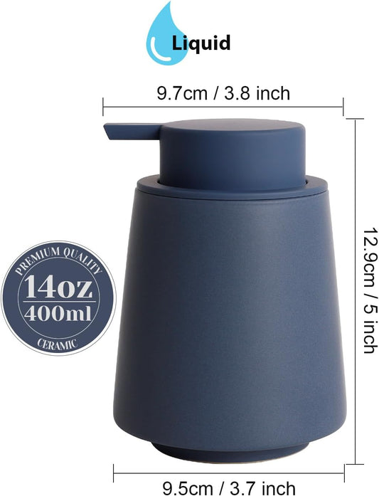 INGOFIN Ceramic Soap Dispenser, 14 oz Bathroom Hand Soap Dispenser, Liquid Dispenser with Pump, Refillable Modern Lotion Dish Dispenser for Kitchen, Matte Blue