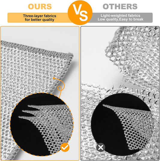 Inkhut Non Scratch Wire Dishcloth, Multipurpose Wire Dishwashing Rag for Wet and Dry, Multifunctional Dish Rags for Washing Dishes, Reusable Steel Wool Scrubber for Kitchen Cleaning