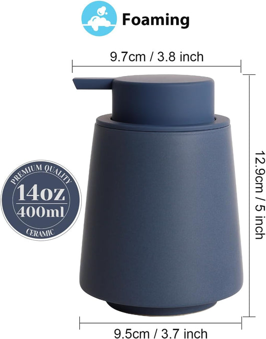 INGOFIN Ceramic Foaming Soap Dispenser -14 oz Foam Hand Soap Dispenser Bathroom, Modern Refillable Dish Wash Bottle for Kitchen with Large Pump, Matte Blue