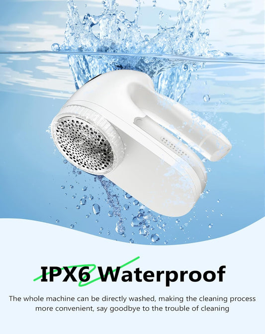 IPX6 Waterproof Washable Electric Fabric Shaver and Lint Remover, Rechargeable Sweater Defuzzer with 3 Free Extra Blades, Quickly and Effectively Remove Fluff, Fuzz, Bobbles for Clothes, White