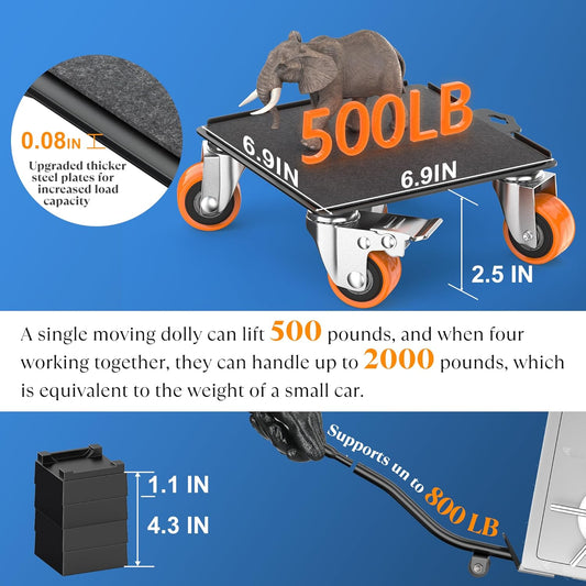 2000 lb Capacity - Heavy Duty Furniture Movers with Wheels and Moving Dolly, Includes Furniture Lifter Jacks Tool Set, Gliders, Sliders, 5 Rollers Casters Cart. Easily Move Furniture, Piano, Equipment