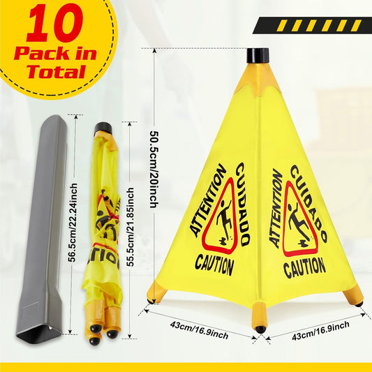 10 Pcs Pop up Wet Floor Sign with Storage Tube 20 Inch Wet Safety Signs Commercial Caution Safety Cone Pop up Caution Sign for Commercial Stores Grocery Restaurant Restroom Office Use