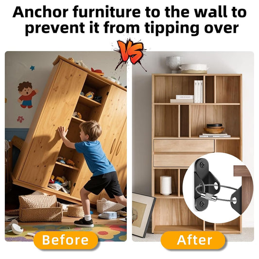 10-Pack Baby Proof Heavy Duty Furniture Anchors for Dressers, Bookcases and TV Cabinets 400LB Anti Tip Kit with Stainless Steel Hardware Shock Straps (Black)
