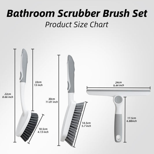 3 Pack Heavy-Duty Scrub Brush Set, Grout Brush, Shower Squeegee, Shower Cleaning Brush with Non-Slip Grip and Stiff Bristles Scrub Brushes for Cleaning Bathroom, Kitchen, Tile, Grout, Tub, Floor, Sink