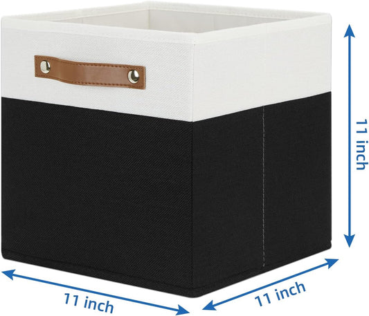 Temary 11 inch Cube Storage Bin 4 Pack Fabric Storage Cubes for Home, Fabric Storage Bin Storage Cube Bins with Leather Handles(White&Black)