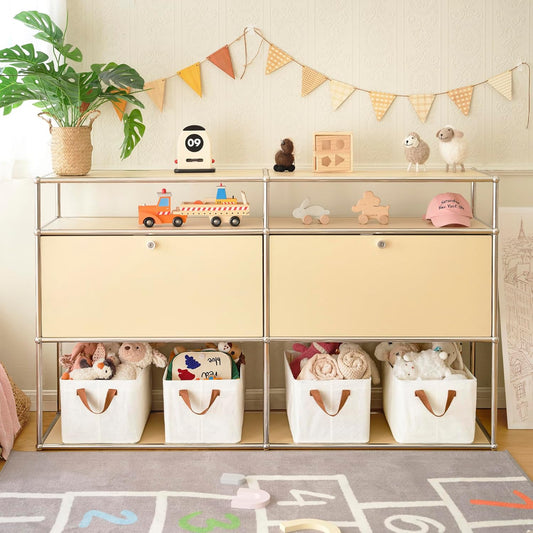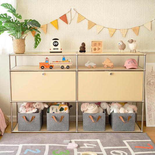 GRANNY SAYS Closet Storage Baskets, Collapsible Fabric Storage Bins with Metal Frame, Clothes Organizer Bins, Large Baskets for Shelves, Ivory, 4-Pack