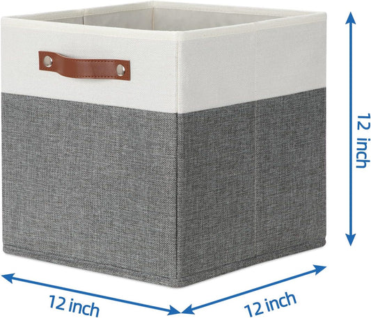 Temary Storage Cubes 12ラ12 Fabric Cube Storage Bins Foldable Storage Baskets with Handles, Decorative Storage Boxes for Organizing, Home, Office, Nursery, Shelf, Closet (White & Grey, 12 x 12 x 12)