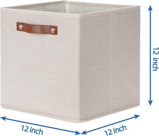 Temary 11x11 Storage Cubes Fabric Storage Cubes Storage Bins with Dual Leather Handles Canvas Storage Boxes for Organizing Home, Shelf, Closet (Beige, 11 x 11 x 11)