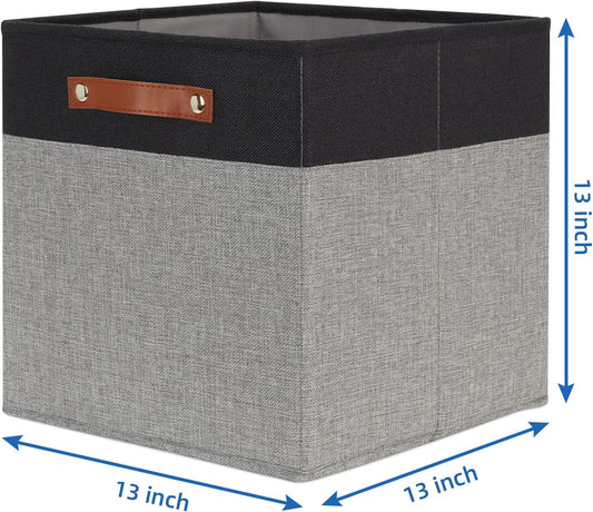 Temary 13 x 13 Storage Cubes Foldable Storage Cubes 4 Pack Canvas Storage Bin for Home, Square Storage Baskets with Leather Handles (Black&Grey)