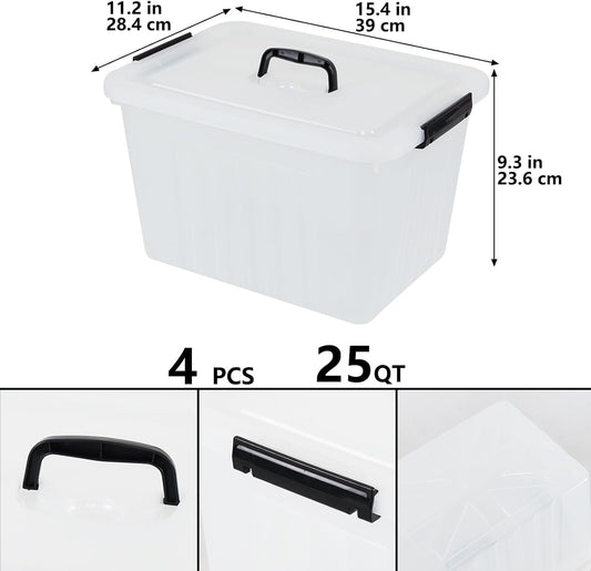 Zopnny 25 Quart Clear Storage Bin with Handle, Plastic Storage Latch Box with Lid, 4 Pack