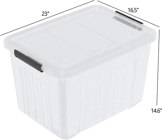 Zopnny 70 Qt Large Plastic Storage Box with Wheel, Clear Storage Latch Box with Lid, 4 Pack