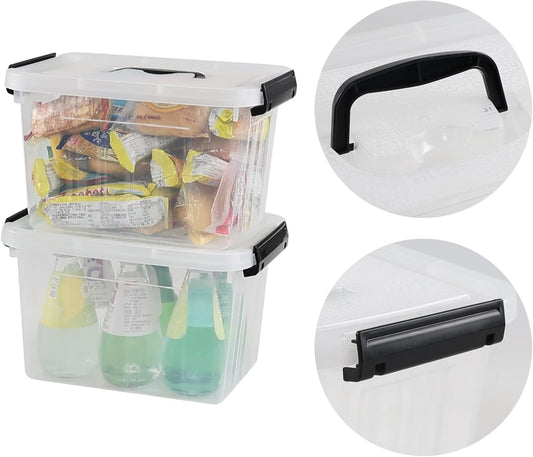 4 Packs Plastic Stackable Storage Container Bin with Lid and Latch, Plastic Latching Box with Handle, 5 L