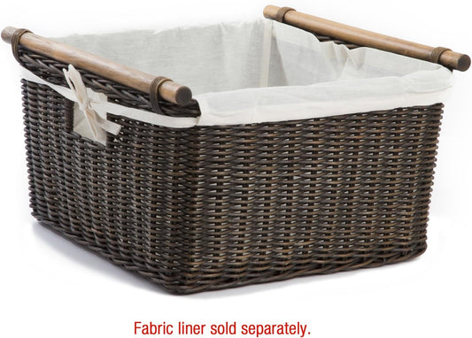 The Basket Lady Deep Pole Handle Wicker Storage Basket, Large, 15 in L x 15.5 in W x 9.5 in H, Antique Walnut Brown