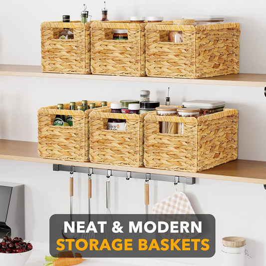 SpaceAid 6 Pack Wicker Basket, Storage Baskets for Organizing, Woven Rattan Basket with Handles for Shelves, Water Hyacinth Large Cube Organizer Storage Bin, 13x8.2x7 inch, Natural