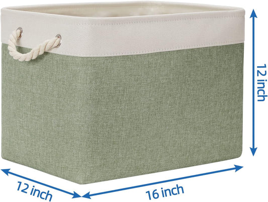 Temary Storage Baskets Fabric Storage Bins for Shelves, 2 Pack Decorative Storage Boxes Canvas Storage Basket with Handles for Organizing Clothes, Books(White&Green,16Lx12Wx12H Inches)